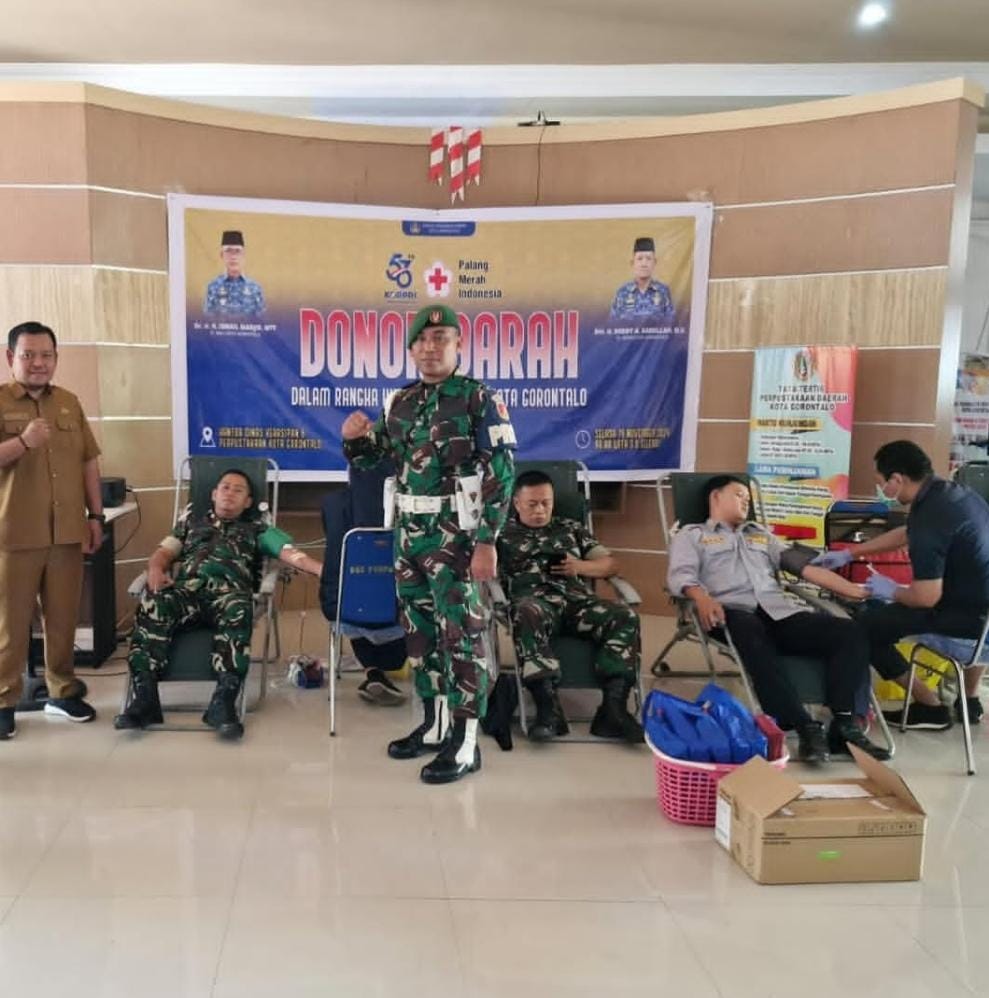 Dalam rangka memperingati Hari Ulang Tahun Korpri ke-53, Unit Korpri Kota Gorontalo menyelenggarakan kegiatan Donor Darah sebagai bentuk kepedulian sosial dan aksi kemanusiaan dari aparatur sipil negara. Kegiatan ini dilaksanakan di Aula Perpustakaan Daerah, Dinas Kearsipan dan Perpustakaan Kota Gorontalo, dan diikuti oleh para ASN dari berbagai Organisasi Perangkat Daerah.