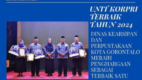 Dalam Rangka HUT Korpri Ke-53 Tahun 2024Dinas Kearsipan dan Perpustakaan Kota Gorontalo Mendapatkan Penghargaan dalam Nominasi Unit Terbaik Satu Kategori 'Konsistensi Dalam Membangun Soludaritas Anggotanya, Keaktifan Kegiatannya, Serta Tata Kelola Manajemen Kepengurusannya."