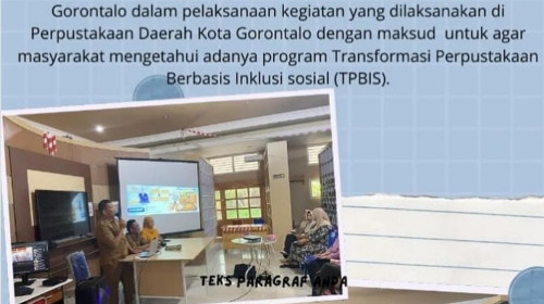 Dinas Kearsipan dan Perpustakaan Kota Gorontalo kembali menunjukkan komitmennya dalam mendukung kemajuan pelaku Usaha Mikro, Kecil, dan Menengah (UMKM) melalui kolaborasi strategis bersama Bagian Pengadaan Sekretariat Daerah Kota Gorontalo dalam kegiatan bertajuk JEMPOL ELOK dan BELLE UMKMKegiatan ini merupakan bagian dari implementasi Program Transformasi Perpustakaan Berbasis Inklusi Sosial (TPBIS) yang secara aktif dikembangkan oleh DKP Kota Gorontalo untuk menjadikan perpustakaan sebagai rua...