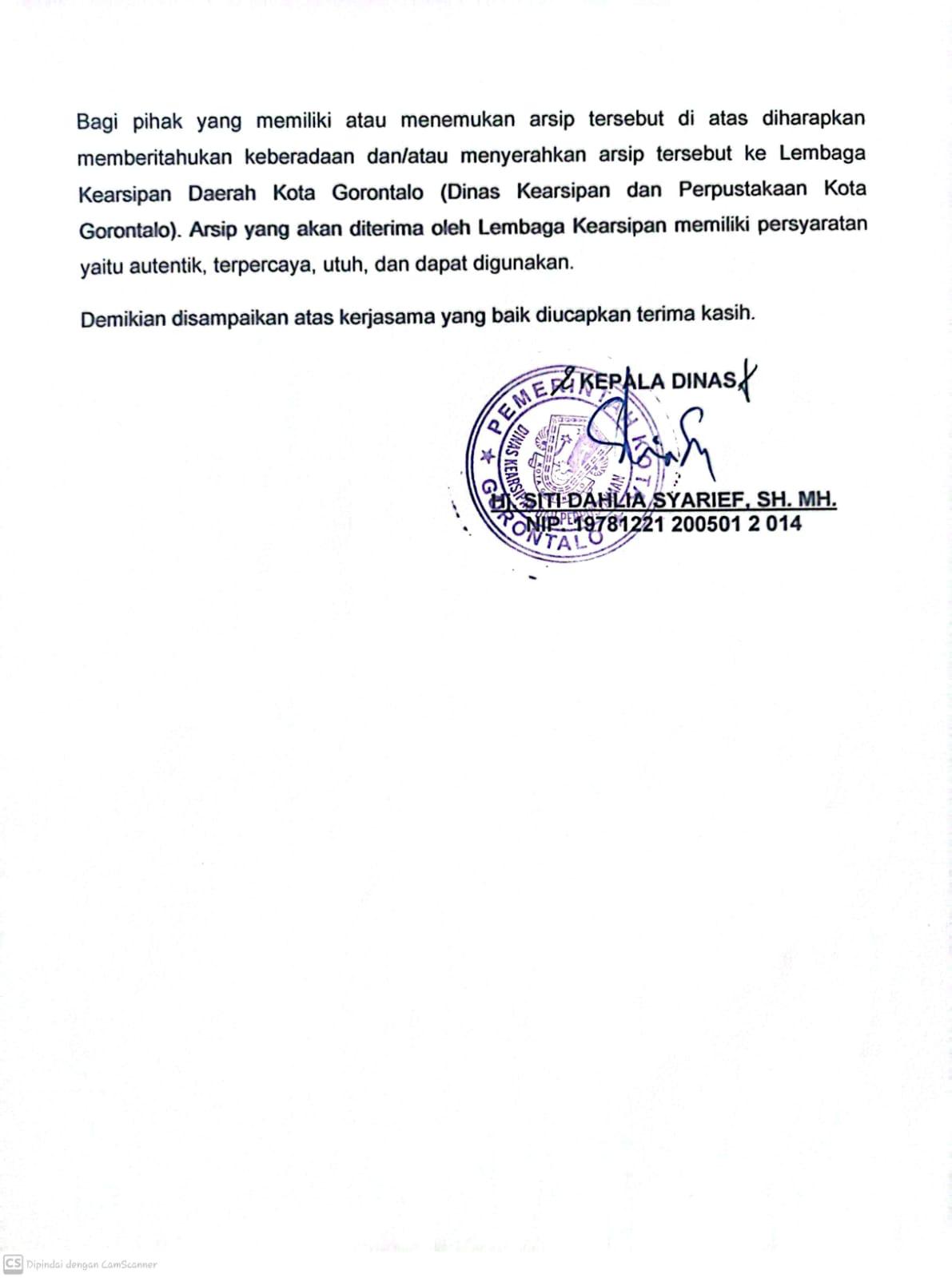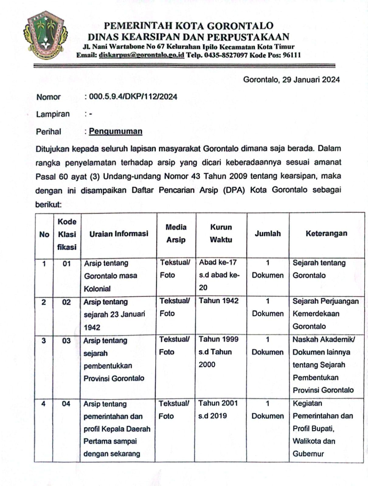 Daftar Pencarian Arsip (DPA) Kota Gorontalo